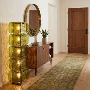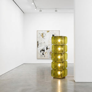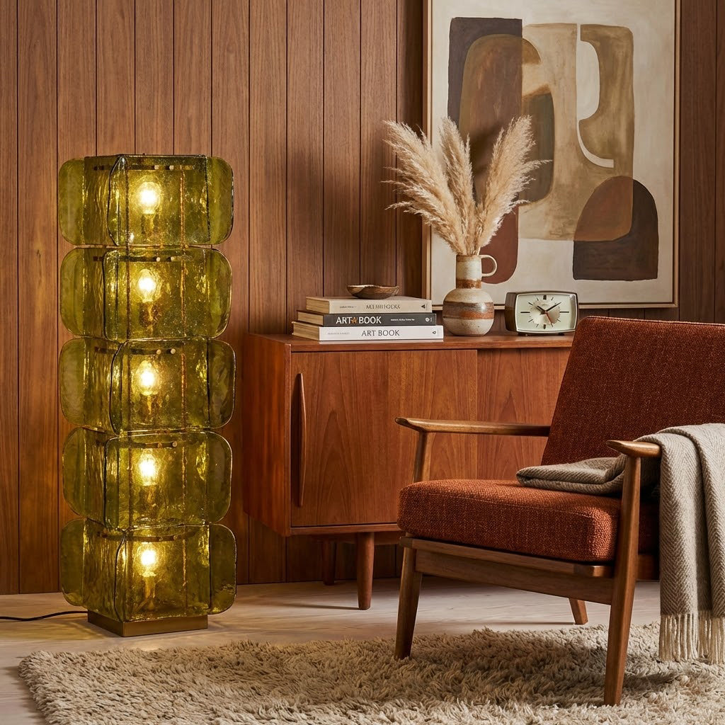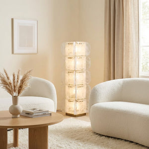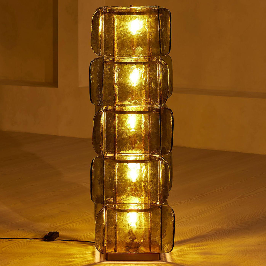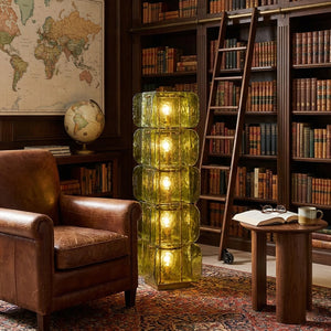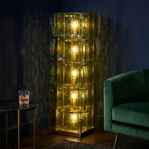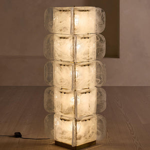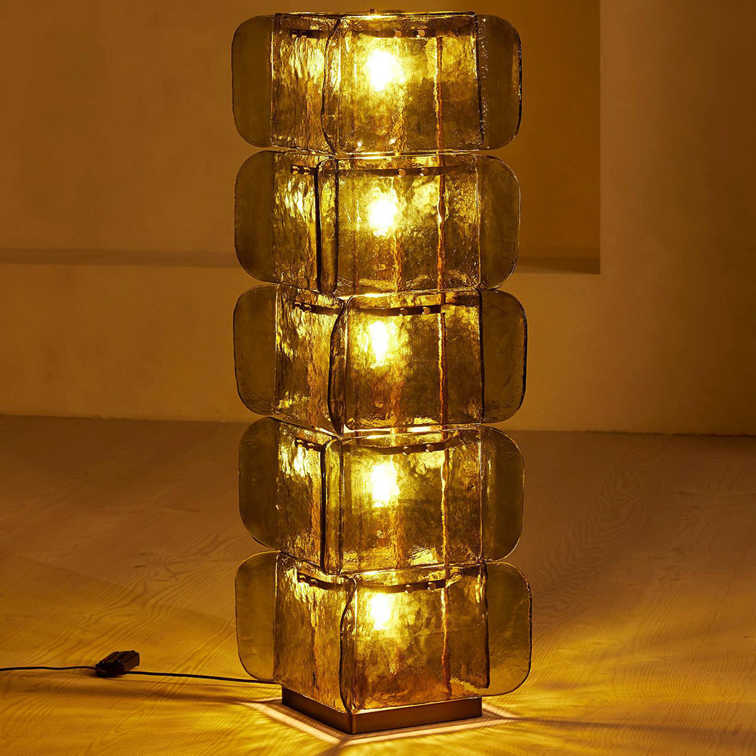 The Stacked Glass Floor Lamp features a vertical progression of layered glass sections that create a tall, elegant form with visual rhythm. Designed to stand beside sofas, in entryways, or within living areas, its stacked silhouette draws the eye upward and adds architectural interest without dominating the room’s overall design.