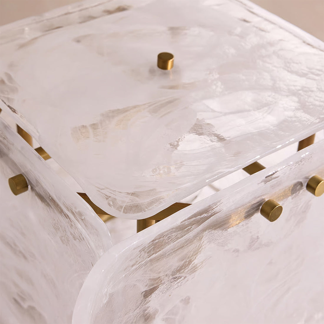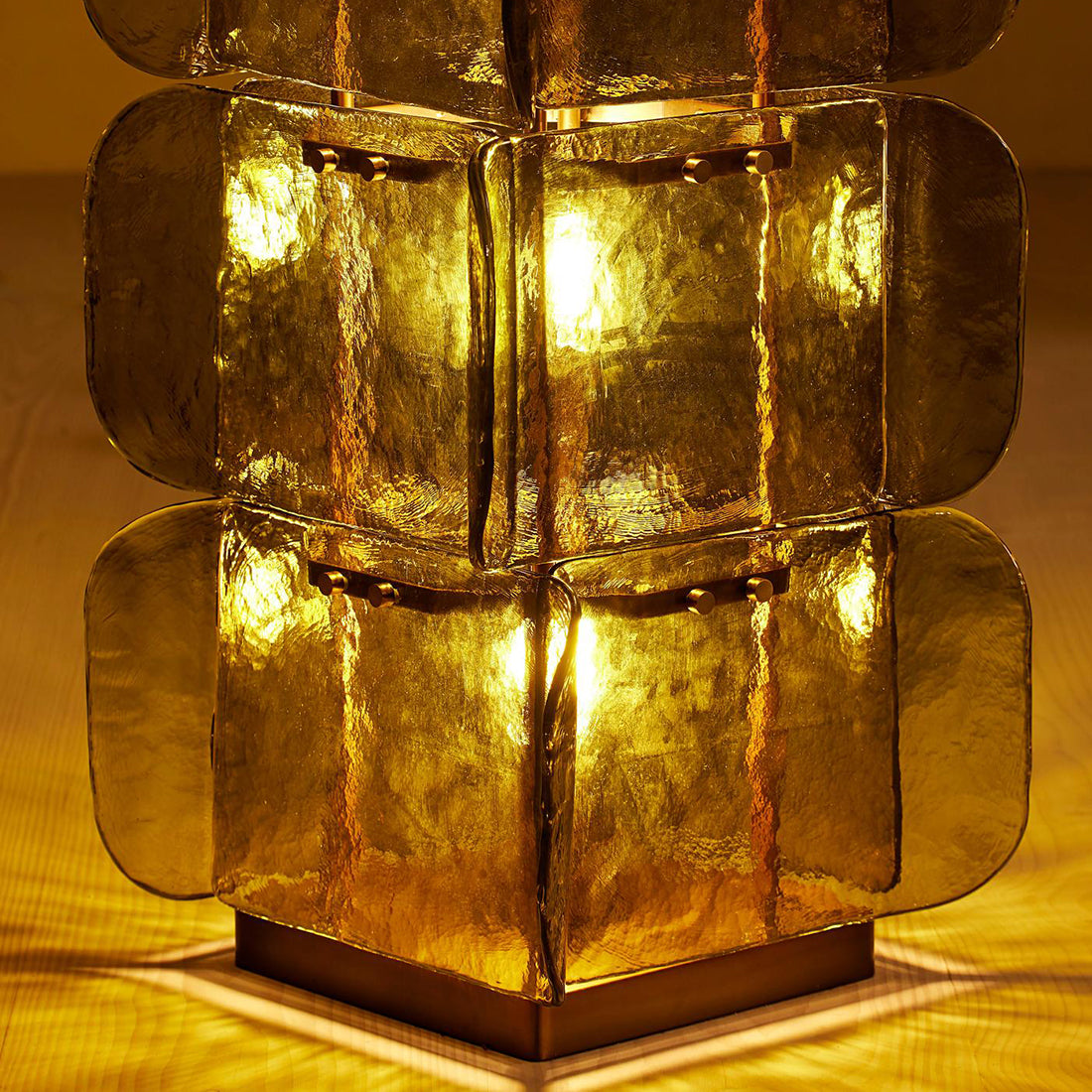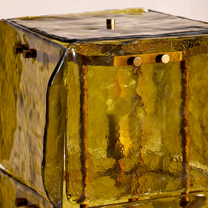 Each textured glass segment interacts with light in its own way, allowing illumination to diffuse softly through varying surface planes and introducing subtle depth throughout the space. The overall presence enhances interior ambiance through sculptural form and gentle radiance rather than bold ornamentation.