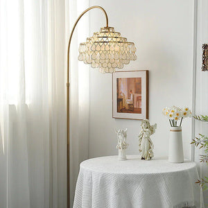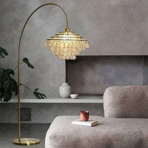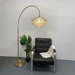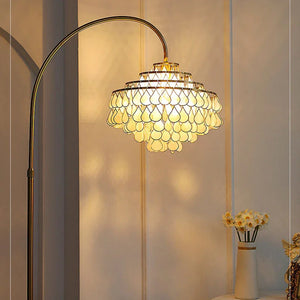 Our Teardrops Capiz Arc Floor Lamp is a unique way to add style to any living space. Crafted from shell, the lamp features a beautiful shell design that illuminates your room.