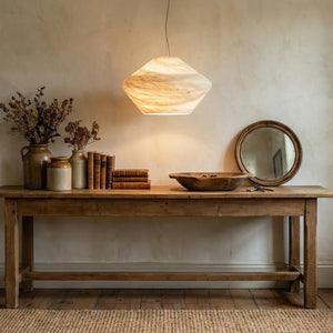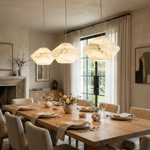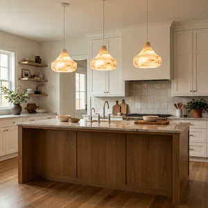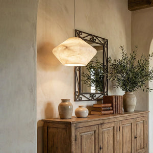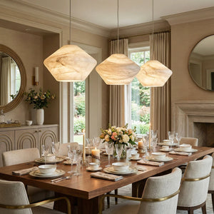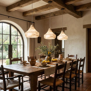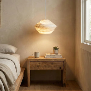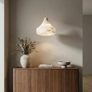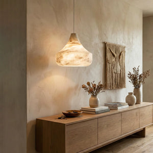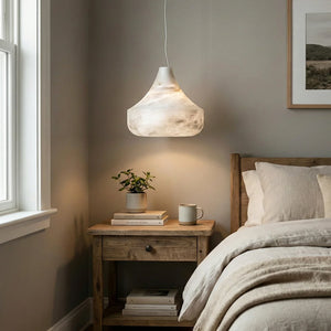 Immerse yourself in the warm and luxurious glow of the Conical Minimalist Alabaster Pendant Lamp. This lamp is a masterpiece tailored for modern spaces that value refined living. It's the ideal choice for contemporary minimalist bedrooms, dining rooms, kitchens, and entryways. Its elegant design not only provides exceptional lighting but also serves as a visual work of art that instantly elevates the style of any space.