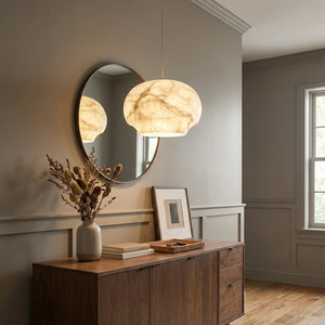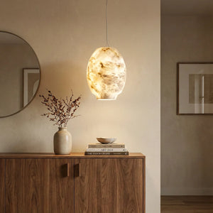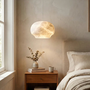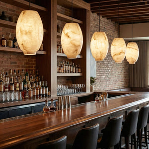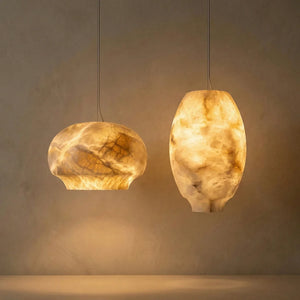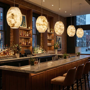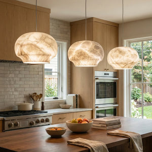 Featuring a classic dome design, its clean yet gentle curves effortlessly complement various modern or French interior styles. This shape focuses and directs light downwards, instantly elevating the ambiance of any dinner setting. Made from high-quality natural alabaster, this rare material possesses a warm, luminous glow that no artificial material can replicate. Each lamp retains the unique texture of the stone, making it a one-of-a-kind artistic display piece. Thanks to the natural translucent properties of alabaster, it achieves precise soft light control, transforming harsh light sources into gentle, diffused light, creating a warm and inviting atmosphere.