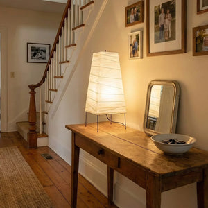 The Akari Trapezoidal 4N Table Lamp perfectly blends traditional craftsmanship with iconic minimalist design. More than just a lighting fixture, it's a harmonious fusion of artistic vision and practical aesthetics, an indispensable addition to any modern interior space. Its minimalist design allows it to seamlessly integrate into natural wood-themed, Zen-inspired, or modern apartment settings. The compact yet impactful form makes it ideal as a bedside ambient light or a supplementary reading light.