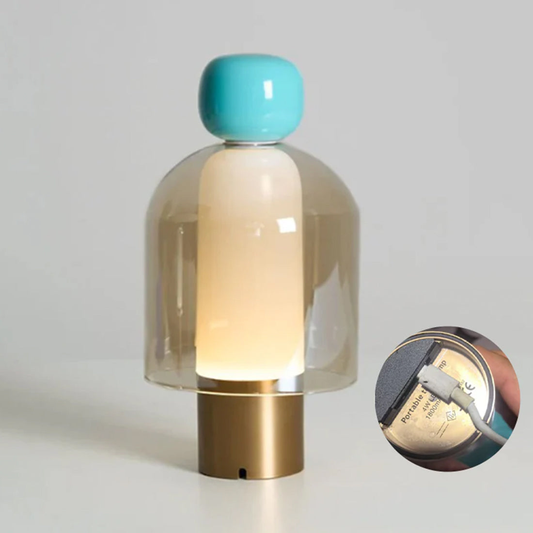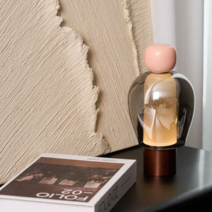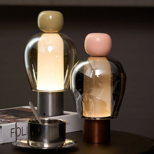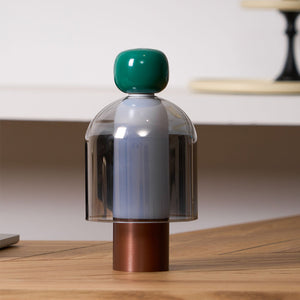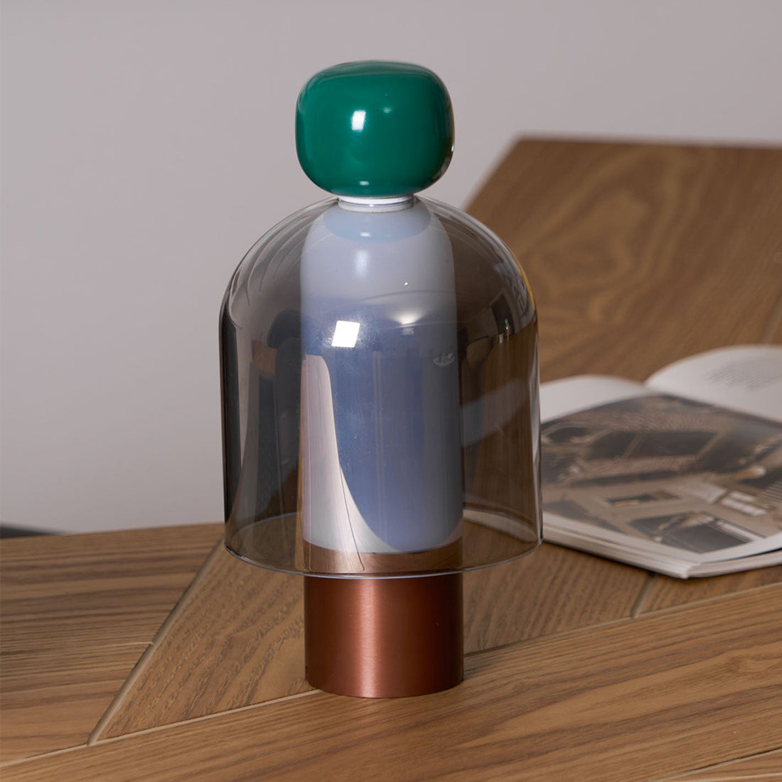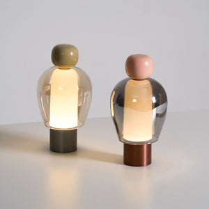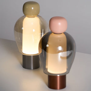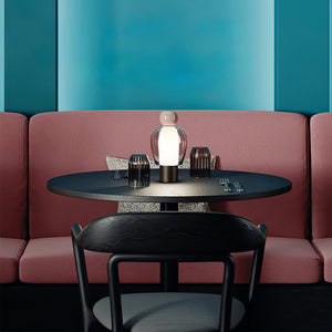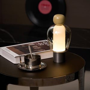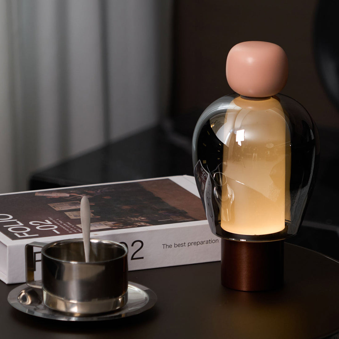 Crafted from glass, the lamp offers refined surface quality and subtle visual depth, while its rechargeable, cordless design supports flexible placement in different areas of the home. As a glass-made piece, it is best handled with care when moving, combining thoughtful mobility with a sense of considered craftsmanship and elegance.