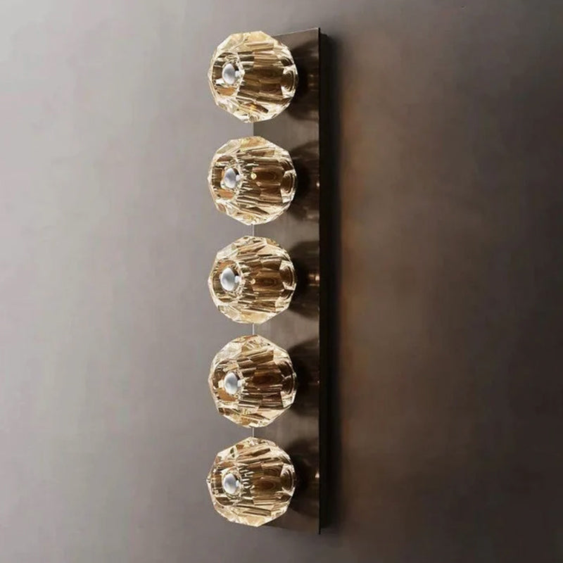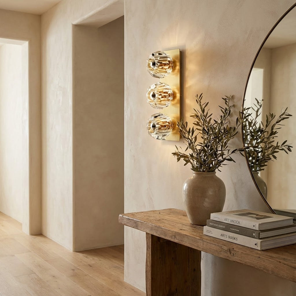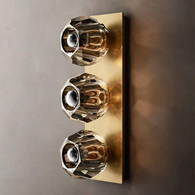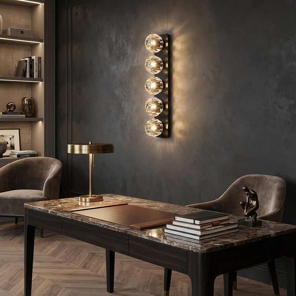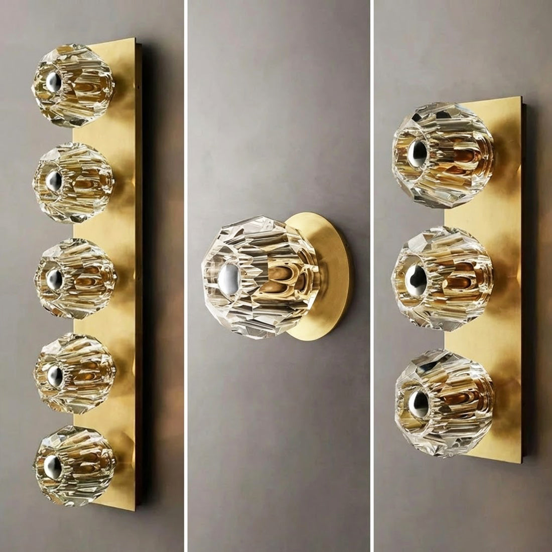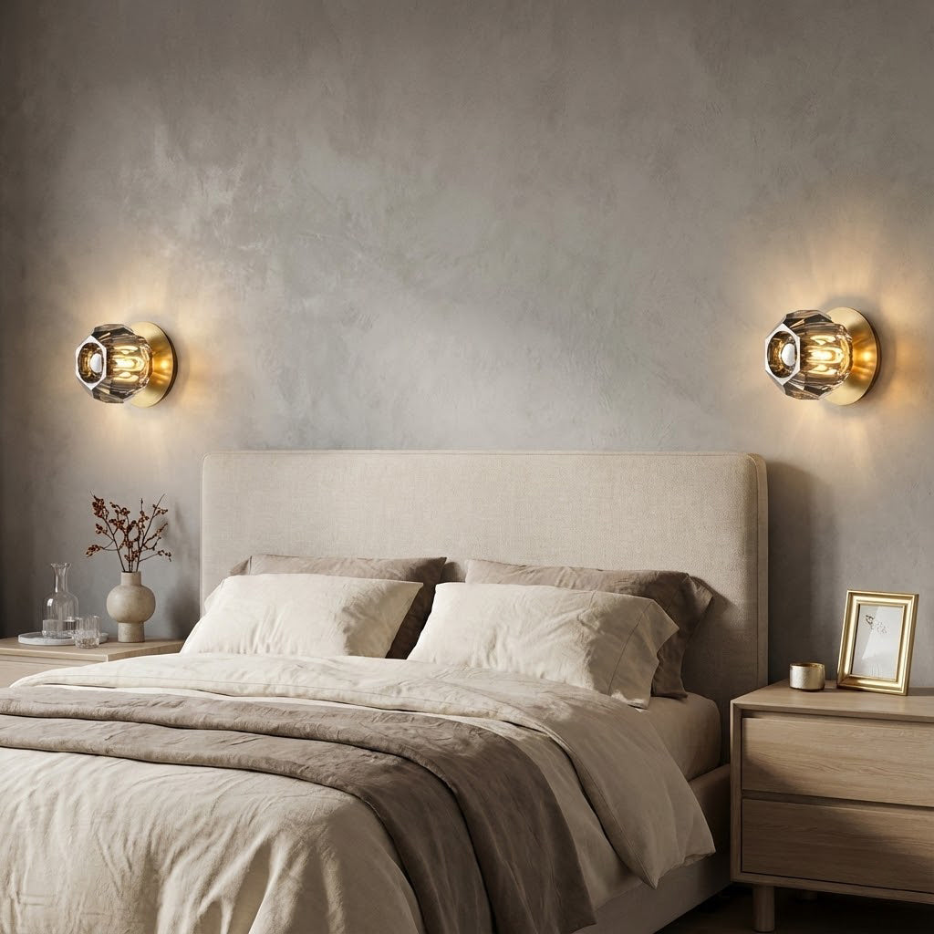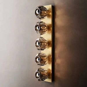 The Mini Crystal Orb Bedside Wall Light is a refined expression of modern luxury, crafted from solid brass and luminous crystal. Gracefully polished crystal orbs—available in clear or smoke finishes—float against warm brass detailing, creating a sophisticated interplay of light and material. Offered in single-head, three-head, or five-head configurations, the design allows for tailored compositions that elevate bedside settings, corridors, or statement walls. With its elegant proportions and timeless materials, this wall light delivers a sense of quiet opulence and architectural refinement to any interior.