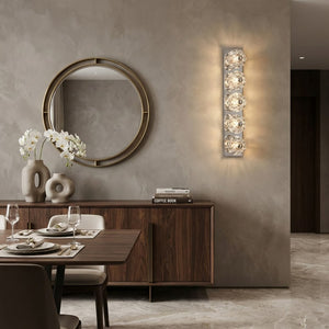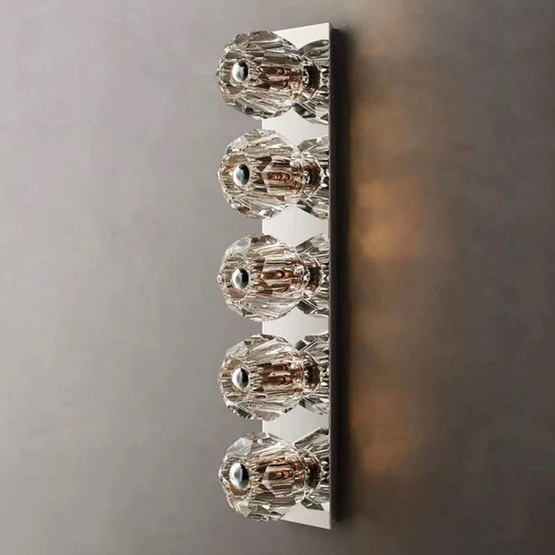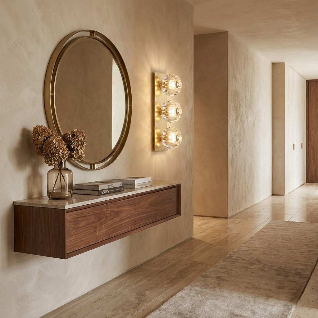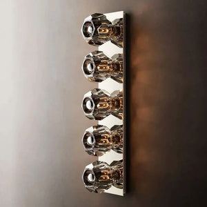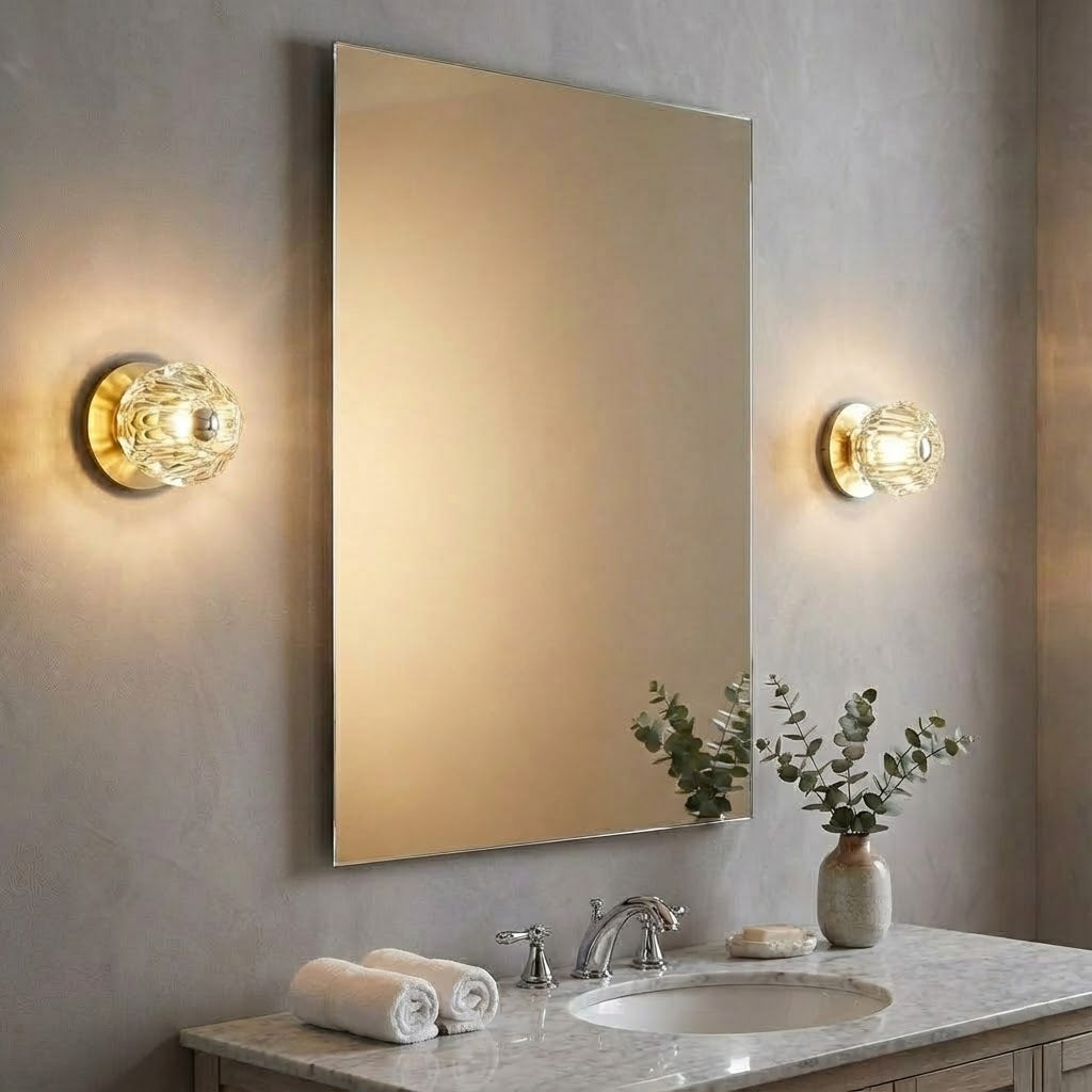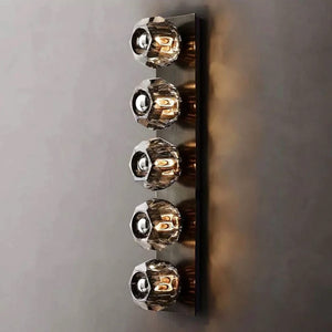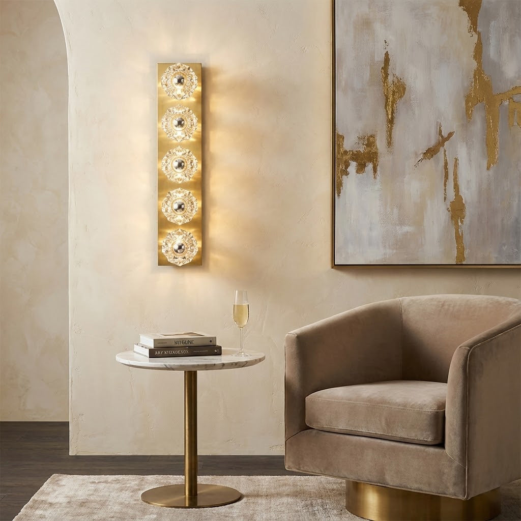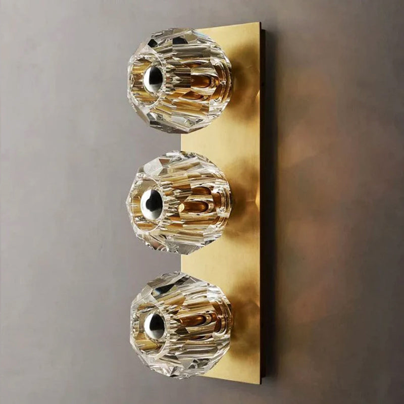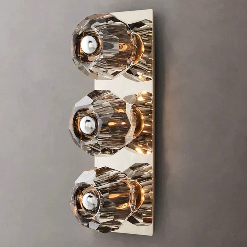 The Mini Crystal Orb Bedside Wall Light is a refined expression of modern luxury, crafted from solid brass and luminous crystal. Gracefully polished crystal orbs—available in clear or smoke finishes—float against warm brass detailing, creating a sophisticated interplay of light and material. Offered in single-head, three-head, or five-head configurations, the design allows for tailored compositions that elevate bedside settings, corridors, or statement walls. With its elegant proportions and timeless materials, this wall light delivers a sense of quiet opulence and architectural refinement to any interior.