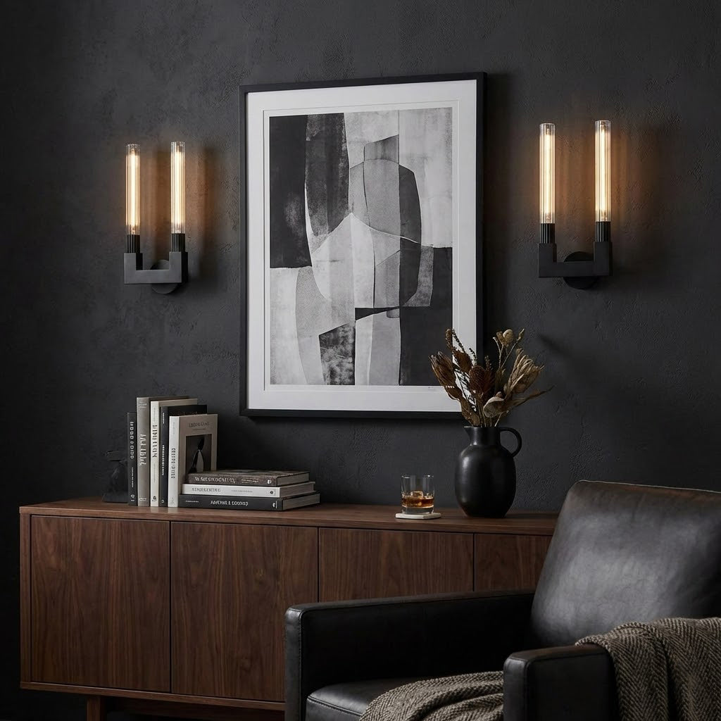 Ribbed glass softly diffuses the light, producing a gentle, ambient glow that adds depth without glare. Used alone or in pairs, the fixture provides balanced illumination while enhancing the space with clean lines and subtle sophistication.