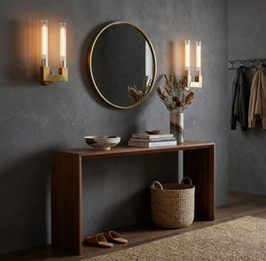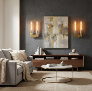 The Modern Linear Brass & Glass Wall Light features a sleek linear silhouette that brings understated elegance to modern interiors. Its slim proportions and warm brass finish create a refined wall accent ideal for hallways, bedrooms, or living spaces, blending effortlessly into contemporary and minimalist settings.