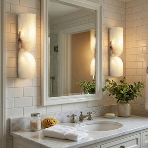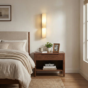 The Rectangular Essence Alabaster Wall Sconce seamlessly integrates artistry and ambiance into your space. More than just a light fixture, it's a profound statement of timeless design and natural beauty. Its slender and elegant structure is perfect for hallways, living rooms, or as a sophisticated accent beside a bed or mirror in a bedroom. Combining sculptural aesthetics with lighting functionality, it effectively elevates the style and depth of your interior space while providing practical illumination.