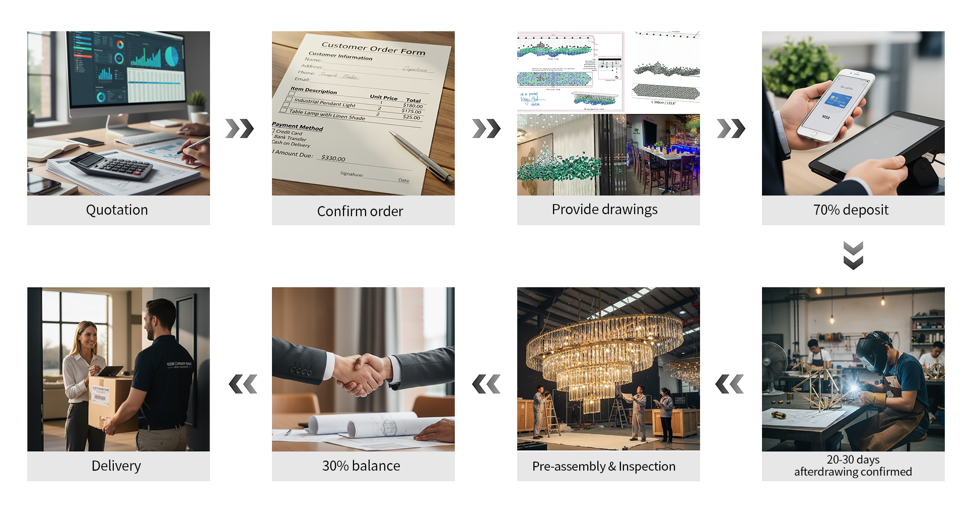 With over a decade of experience, our advanced factory specializes in crafting large-scale, custom-designed lighting pieces for prestigious projects worldwide.