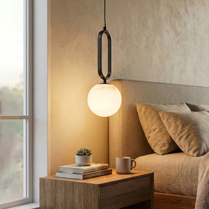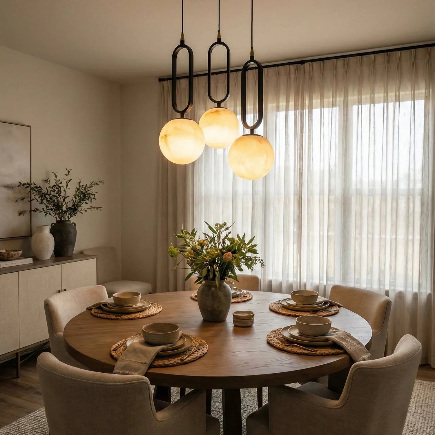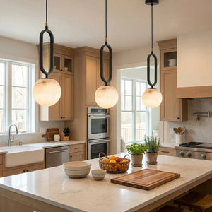 The Ball Alabaster Oval Ring Pendant Lamp is an elegant fusion of natural elements and luxurious aesthetics. At its core is a carefully selected piece of natural alabaster, precisely polished into a translucent artistic form, infusing modern homes with a light and airy spirit. Whether used as a bar counter pendant light, a bedside reading lamp, or as an accent in stairwells or entryways, its compact size belies its powerful artistic presence. This single-head pendant light is ideal for hanging in groups. Depending on your space requirements, you can arrange lights of different sizes or heights to create a rhythmic and visually striking lighting effect.