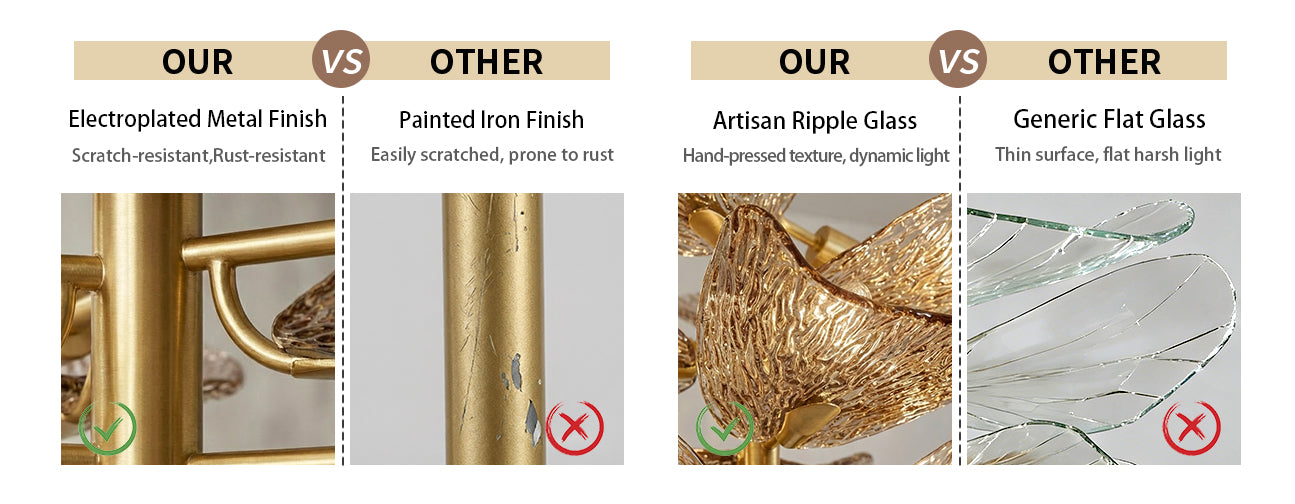 Every hand-textured glass leaf offers a unique, multi-layered visual depth that mass-produced fixtures simply cannot match.